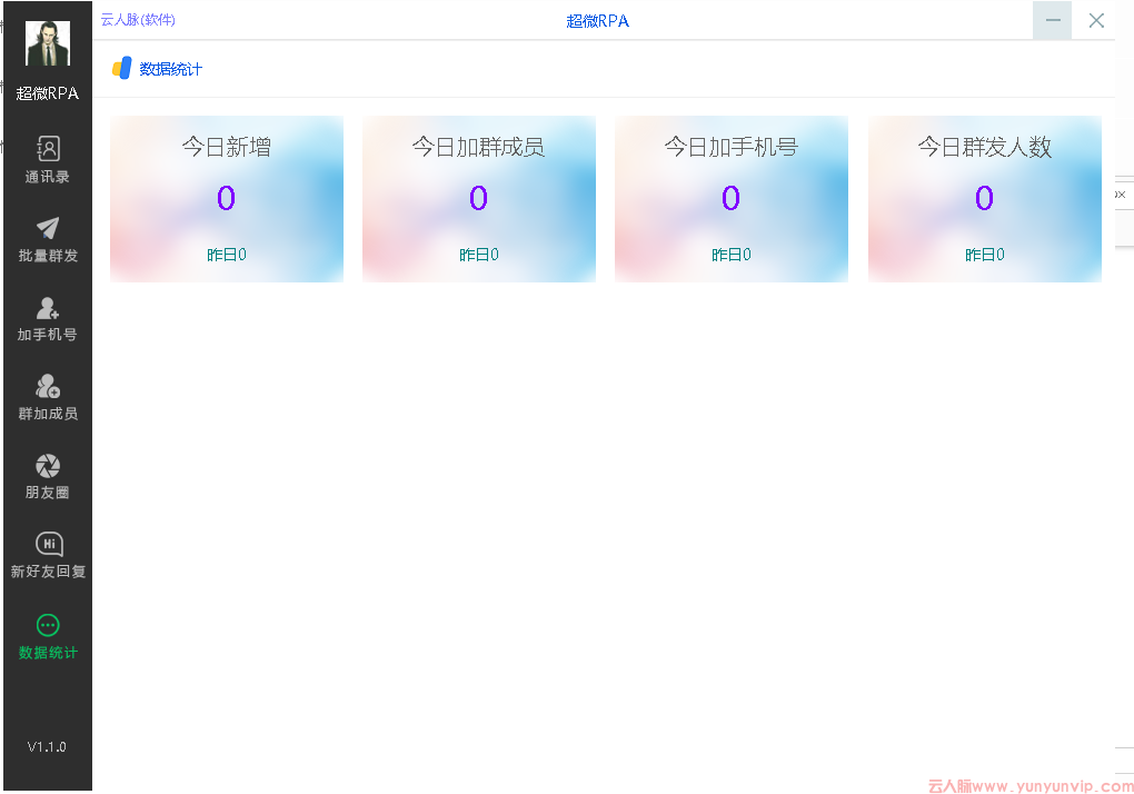 7、数据统计:可统计今日新增、今日加群成员、今日加手机号、今日群发人数